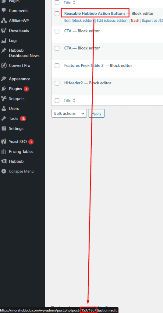 If you’ve created multiple sets of Action Buttons, you can choose exactly which one to display by gathering the ID of the pattern and outputting this into the shortcode.