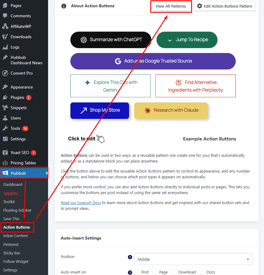 - In your WordPress dashboard, go to Hubbub → Action Buttons